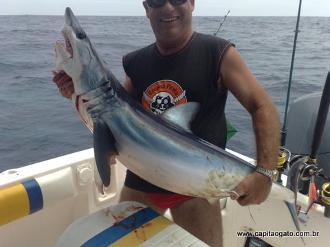 Este tubarão de 25K deu um trabalhão para embarcar,quando cai dentro da lancha saiu mordendo tudo que via pela frente,ele será preparado no jantar de aniversário da nossa amiga Kelly hoje a noite.